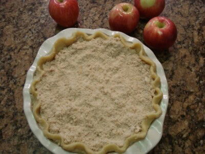 - SPRINKLE: Top the apple filling with crumb topping, making sure to reach the edges. (At this point, you can freeze the pie. Wrap it in two layers of foil or plastic wrap and seal it in a Ziploc bag.)