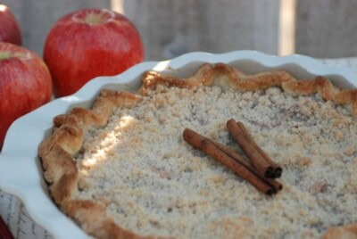 This apple crumble pie recipe has the flaky pie crust of a traditional apple pie with the delicious crumb topping you know and love from apple streusel.