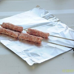 - Slide sausage links on a skewer.