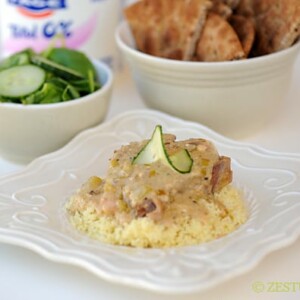 But I wanted to try something a little new in my Crock-Pot. I wanted to cook with Greek yogurt. If Iโm going to eat lamb, I like it with Tzatziki sauce (a yogurt cucumber mix).