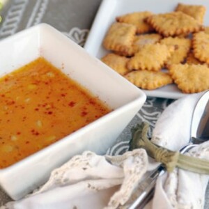 Ladle soup into a bowl and serve with some sweet potato cheese crackers on the side. Add a splash of heavy cream, sour cream or full-fat coconut milk for a more creamy soup. If you want some protein, add a side of lemon pancetta chicken or autumn umami chicken. Add some daily bread for good measure.
